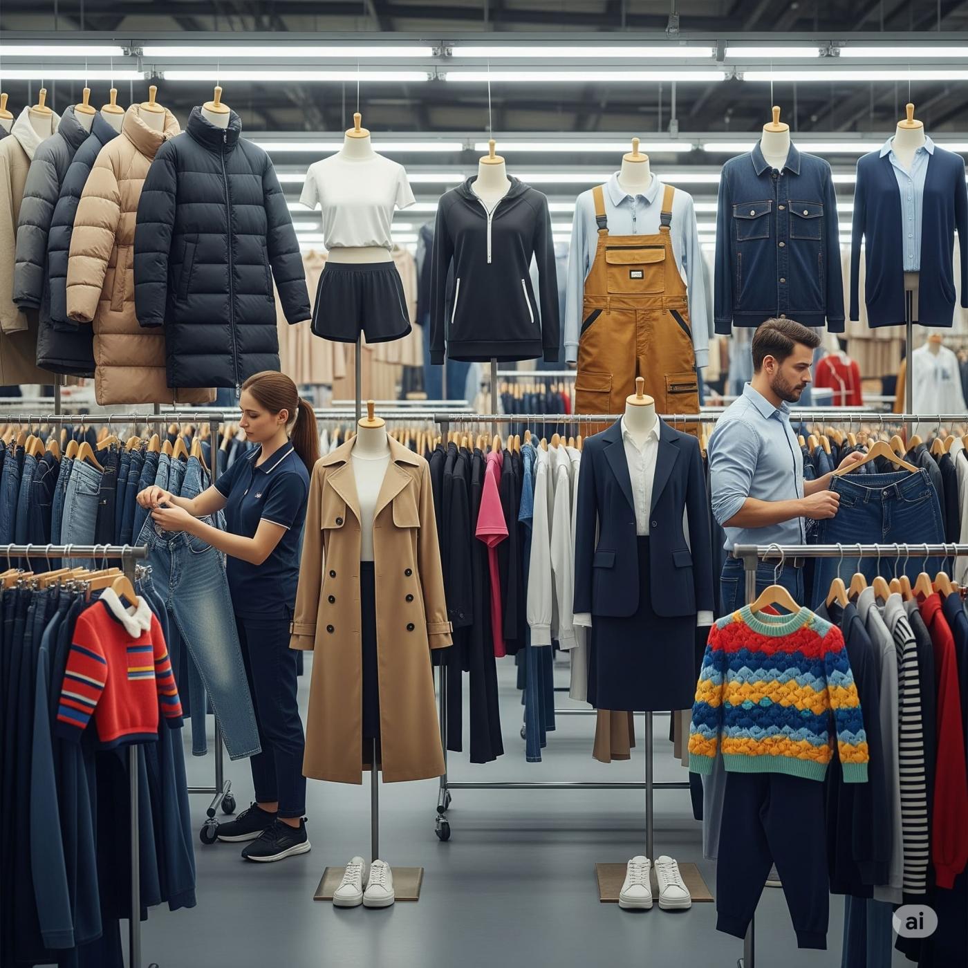 Ready-made garments are mass-produced finished textile products of the clothing industry and a popular sector in Turkey. Ready-made are garments that can be bought off of store racks or online, and are ready to wear. They are not custom tailored according to measurements, but rather generalized according to anthropometric studies to fit a general range. They are made from many different fabrics and yarns. Their characteristics depend on the fibers used in their manufacture. Ready-made garments are divided into the following types: outer clothing, which includes workwear and uniforms, leisure wear, and sportswear (e.g., suits, pants, dresses, ladies' suits, blouses, blazers, jackets, cardigans, sweaters, coats, sports jackets, skirts, shirts, ties, jeans, shorts, T-shirts, polo shirts, sports shirts, tracksuits, bathing shorts, bathing suits); and undergarments, which include jersey goods and lingerie (e.g. underpants, undershirts, socks, stockings, and pantyhose).